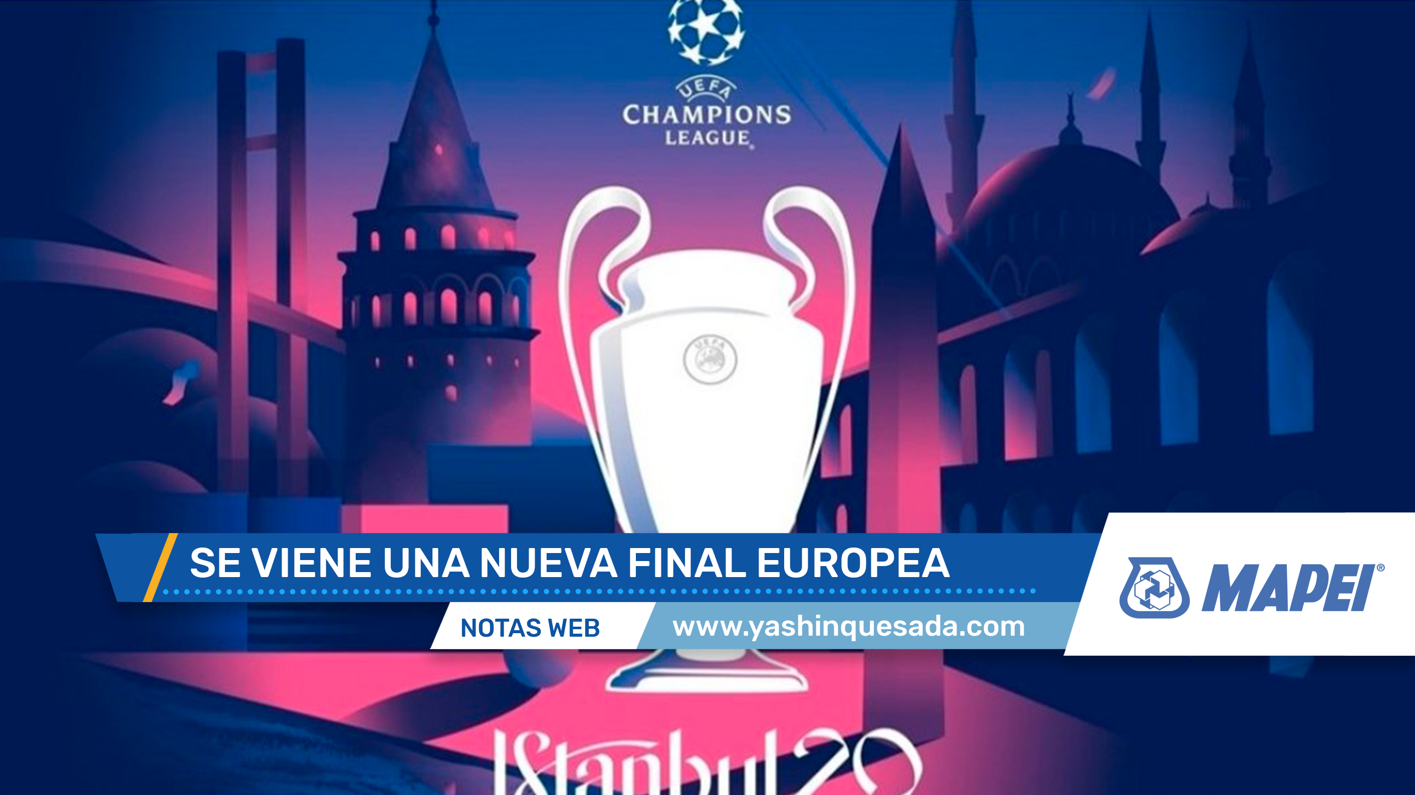 (EFE).- El cartel de la final de la ‘Champions’ de Estambul viene de Nueva York. El artista Tolga Tarhan, nacido en Turquía, pero con estudio en la Gran Manzana, puso tinte y formas a la gran cita entre Manchester City e Inter de Milán. Azul y rosado son los colores del atardecer del Bósforo. Esferas y formaciones puntiagudas se funden como en un juego de Tetris. «Estambul es una ciudad cinematográfica», cuenta el diseñador en una entrevista con EFE.