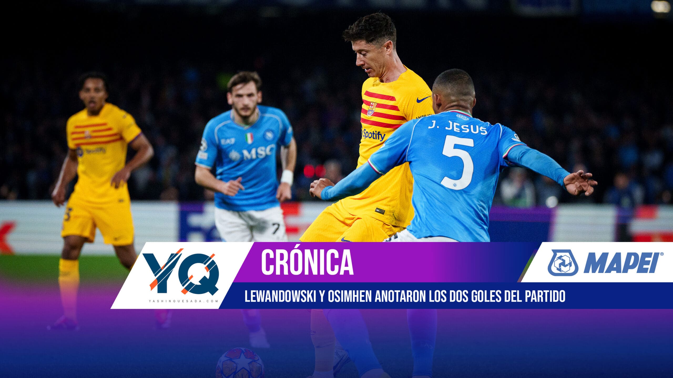 En el complemento, el Barcelona se adelantó al minuto 60 cuando Pedri asistió a Lewandowski, quien controló u definió al primer palo. Pero la ventaja no le duró mucho a los blaugranas, 15 minutos después, Anguissa encontró una línea de pase entre la defensa, Osimhen ganó con el cuerpo dentro área y definió completamente solo ante Ter Stegen.